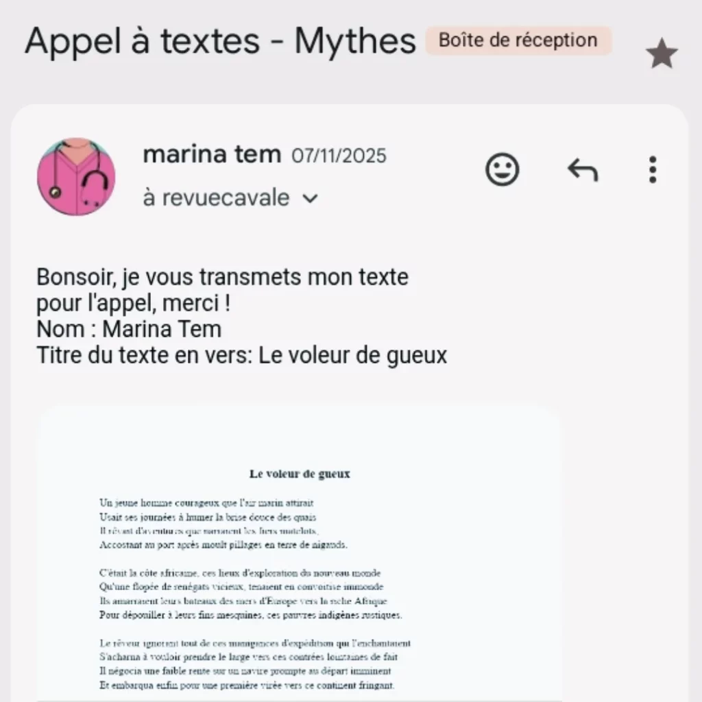 La revue Cavale sur Instagram lançait son 22e appel à texte au mois de Novembre pour lequel j’y ai convié ma plume appréciée aux résultats définitifs.