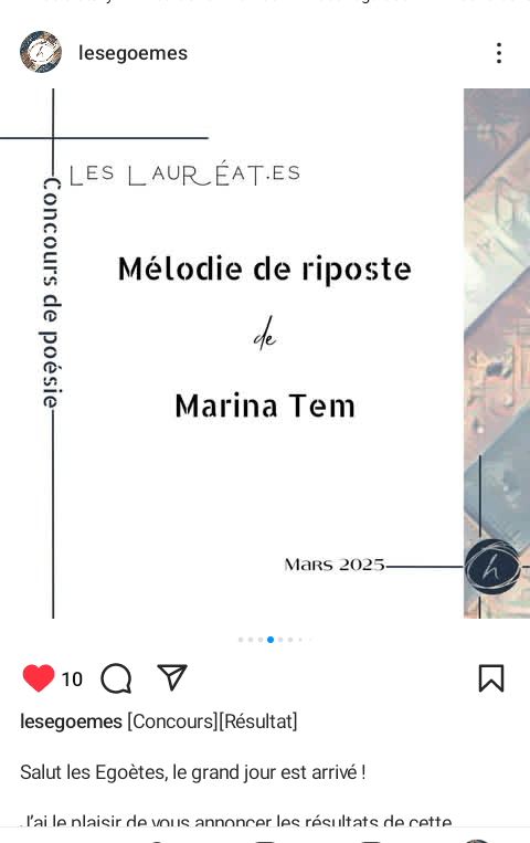 Concours de poésie Les égoemes : participation Mars et résultats🏅
