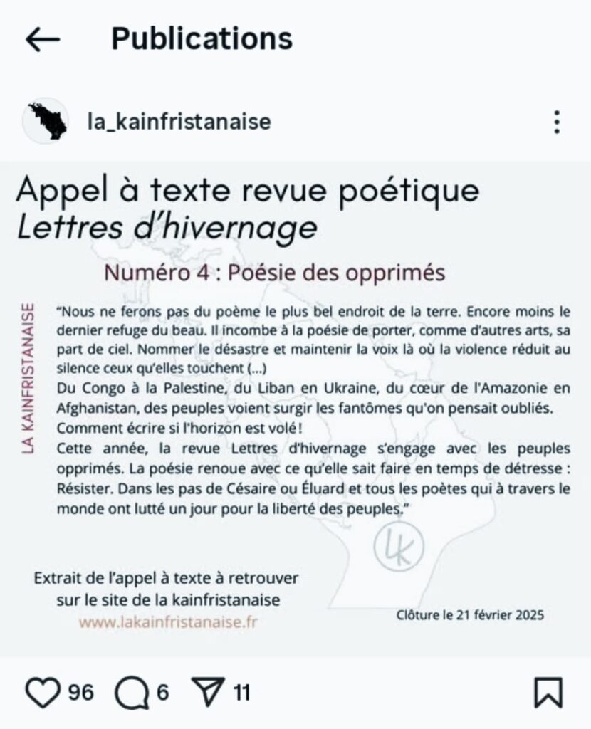 La revue poétique Lettres d’hivernage est un média participatif qui lançait en Janvier l’appel à textes pour son quatrième numéro sur le thème Poésie des opprimés.